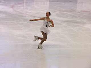 Jen la konkurso "libera danco" por virinoj. Estis tre malfacile foti la belajn movojn sur glacio ĉar ofte la dancistinoj glitis tro rapide por mia fotilo kiu ne estas farita por sportaj okazaĵoj!