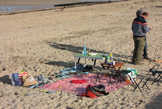 Aliaj malpli timemaj ne hezitis tagmanĝi sur la sablo. Aperas ke ili kunportis ĉion por senĝene pikniki en agrabla medio.